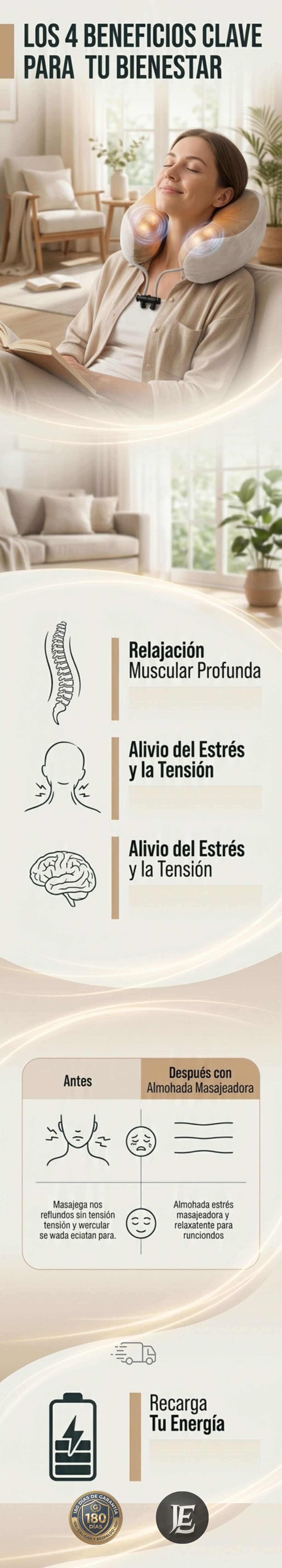 En Intuara Esencial priorizamos tu bienestar. Este producto cuenta con una Garantía de 180 días que cubre cualquier defecto de fabricación o falla técnica en el sistema de masaje desde el momento de la entrega.