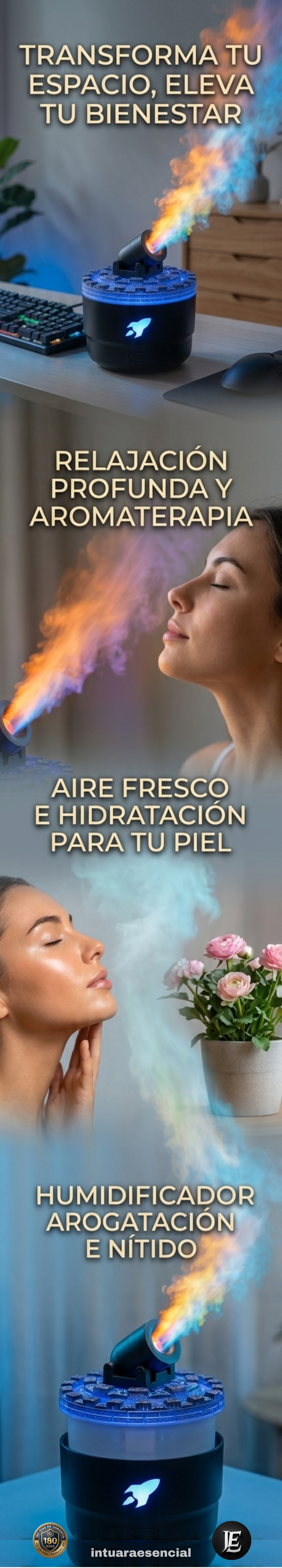 En Intuara Esencial respaldamos cada producto. Este humidificador tiene una Garantía de 180 días contra defectos de fabricación. Además, nos hacemos responsables ante cualquier daño que pudiera sufrir durante el envío hasta tu casa.