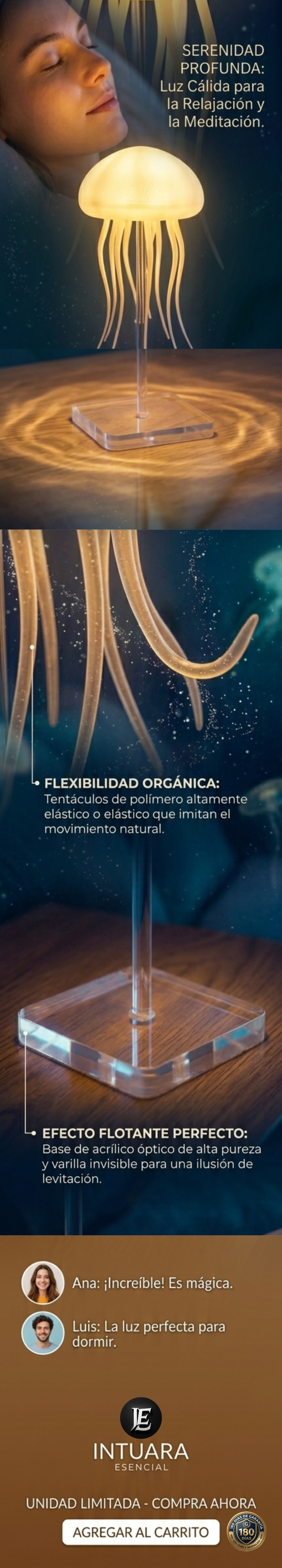 Emite una luz cálida, suave y envolvente. Su diseño permite que la iluminación resalte la forma de los tentáculos, creando un ambiente relajante, sofisticado y sumamente estético, ideal para mesas de luz o rincones de lectura.