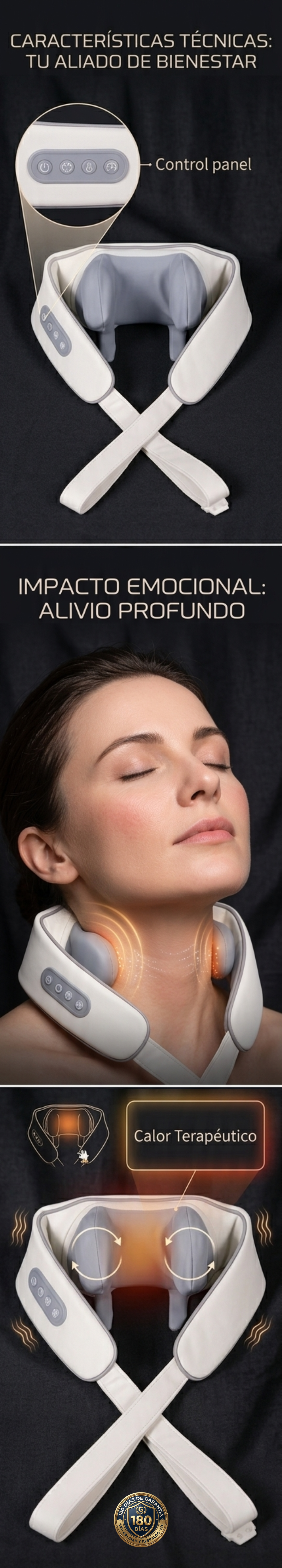 Este masajeador premium cuenta con tecnología de amasado profundo que simula un masaje manual profesional. Desde su panel lateral podés controlar la intensidad, la dirección de rotación y activar la función de calor infrarrojo para una relajación muscular total.